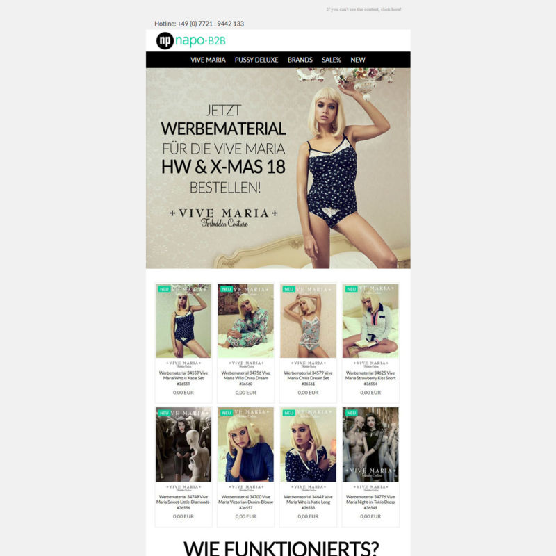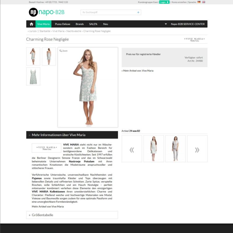 Kompletter Aufbau der online-B2B-Beziehung für Nastrovje Potsdam in Form einer B2B-Plattform mit Vororder-System. Konzeption und Einführung sämtlicher Prozesse zur technischen Umsetzung und Betrieb, Content Management sowie Marketing und Kommunikation. Online-Schulung von Handelsvertretern und B2B-Kunden zwecks Einführung der neuen Plattform.